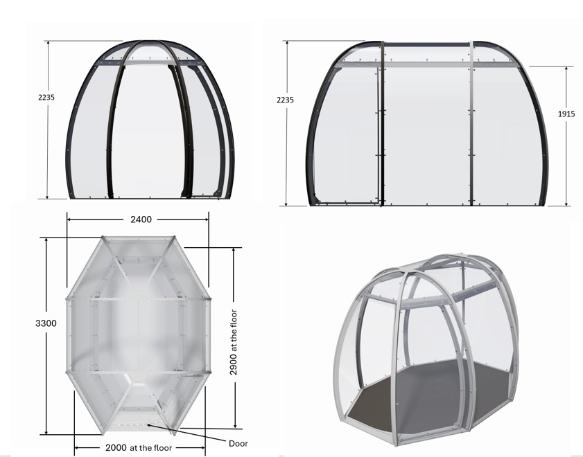 A slightly slimmer pod, the SmAllpod is particularly good for narrow locations where the classic 3m diameter Allpod would be too wide.
