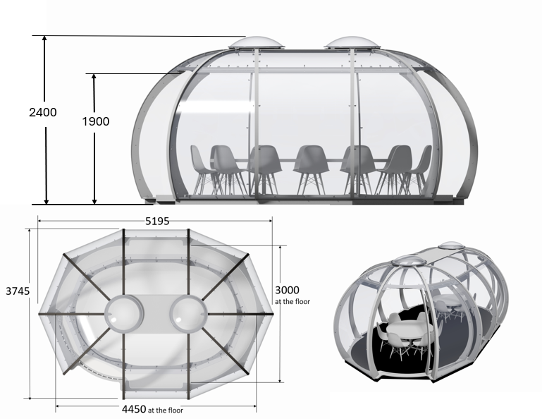 Designed to offer a unique outdoor experience throughout the whole year, the Allpod Stretch 1 adds an extra panel to our classic pod and offers a perfect private dining space for up to 12 guests (capacity varies with furniture use). Each panel adds an extra 1.45m to the length.