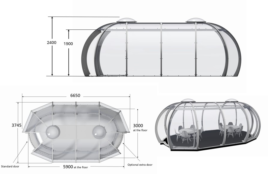 The Allpod Stretch comes with one door as standard but extra doors can be added for £890 per door. There are multiple options/positions for the door/s but they can only sit within the curved ends of the structure.